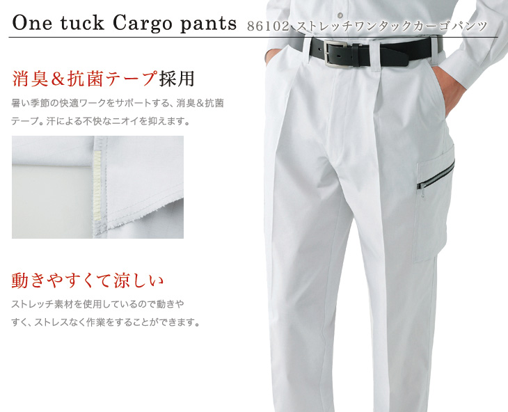 86100シリーズ,自重堂,春夏,ワンタックカーゴパンツ,建設,建築,営業,配達,電気,機械,運送,倉庫,ネービー,シルバー,アースグリーン,クールビズ対応,ストレッチ,消臭,抗菌,帯電防止,