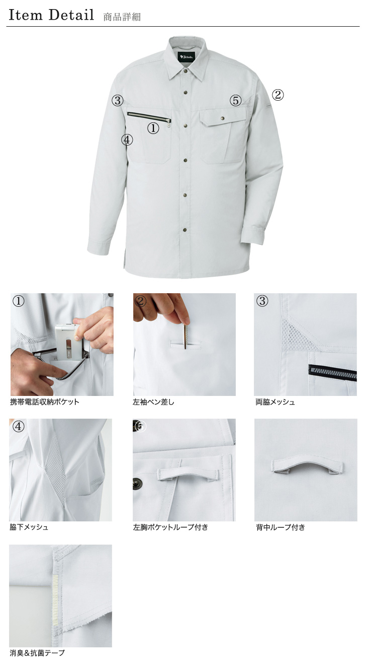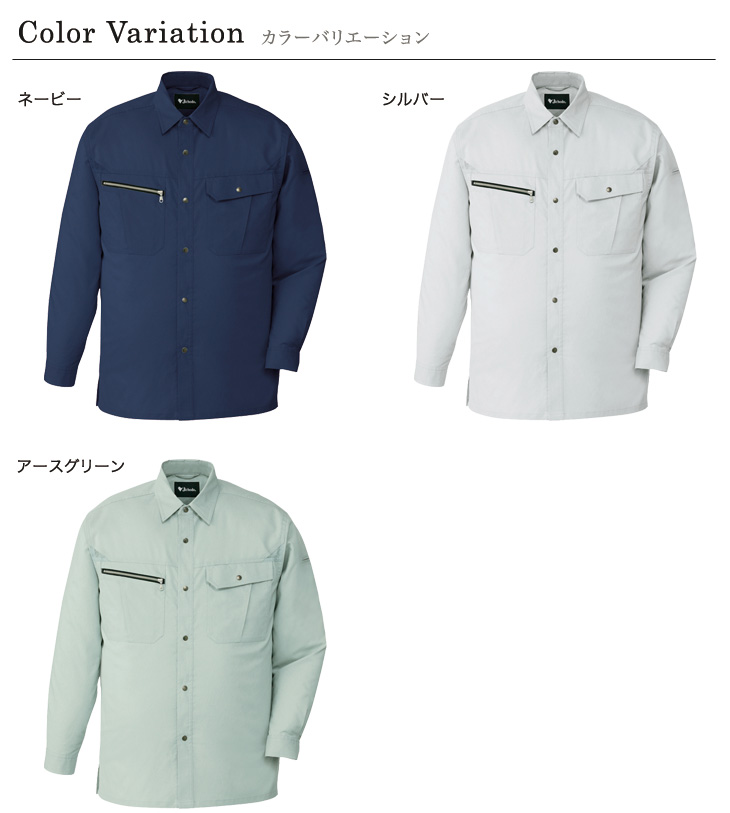86100シリーズ,82100シリーズ,自重堂,春夏,長袖シャツ,オールシーズン,建設,建築,営業,配達,電気,機械,運送,倉庫,ネービー,シルバー,アースグリーン,クールビズ対応,ストレッチ,消臭,抗菌,帯電防止,