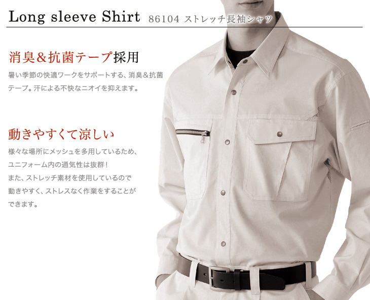 [春夏用]ストレッチ長袖シャツ(01-86104)