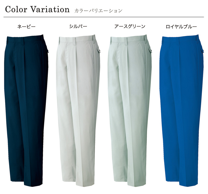 自重堂,春夏用,パンツ,ワンタックパンツ,建築,建設,営業,配達,運送,倉庫,ネービー,シルバー,アースグリーン,ロイヤルブルー,消臭,抗菌,クールビズ,清涼機能,高通気