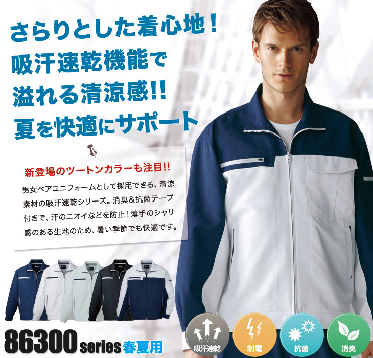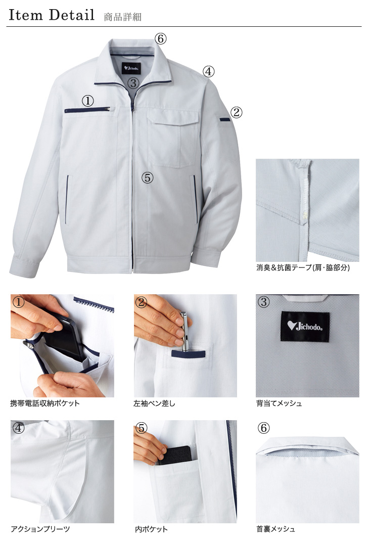 自重堂,春夏,ブルゾン,長袖ブルゾン,帯電防止,吸汗速乾,消臭,抗菌,クールビズ,ネービー,シルバー,アースグリーン,シックブラック,営業,配達,建設,建築,運送,倉庫