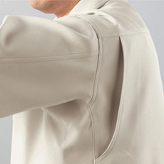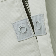 本来必要とされるポケットを敢えて無くすことで、作業中の異物混入を防ぎ、高い安全性を維持します。 胸元にはフラップ風のデザインを施し、デザイン性も兼ね備えました。