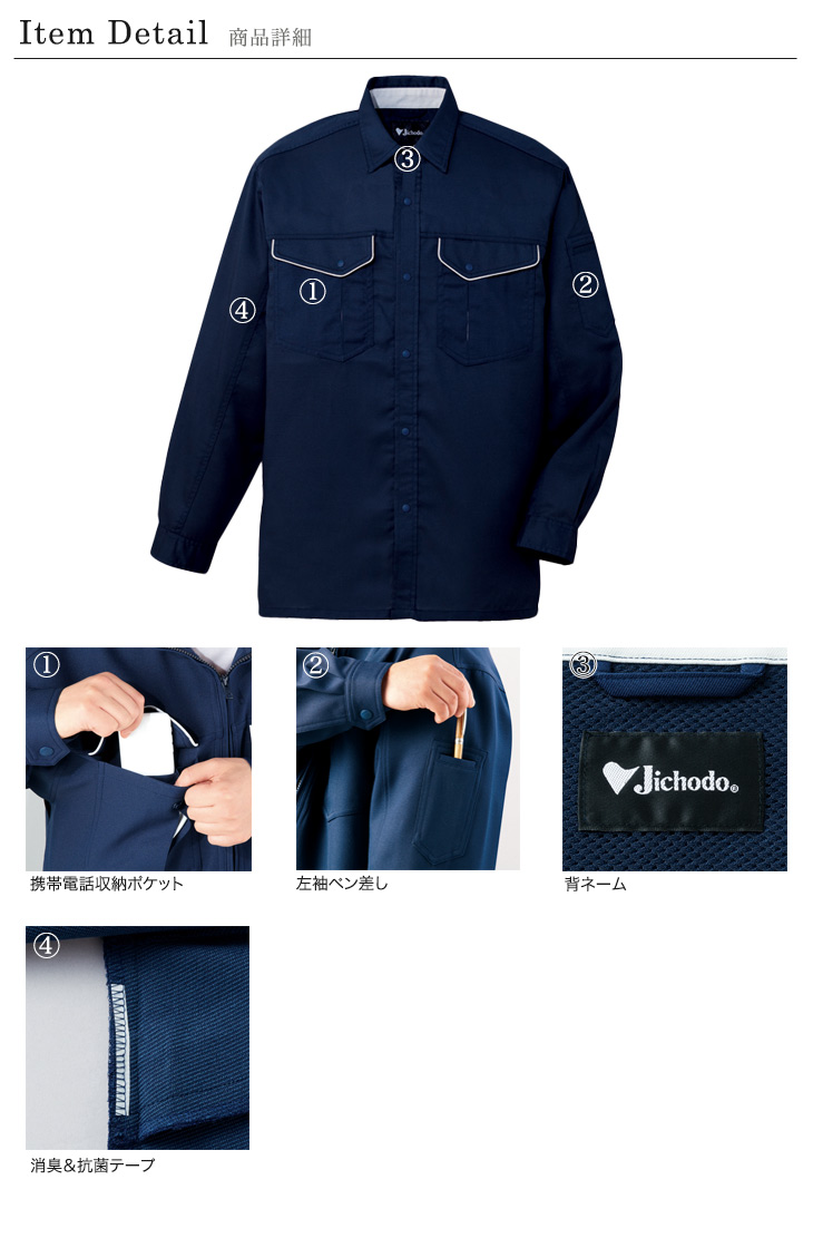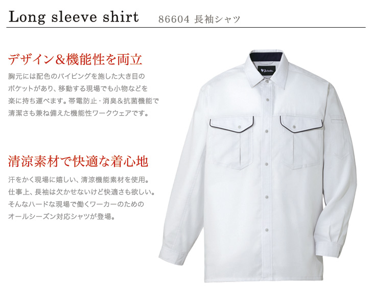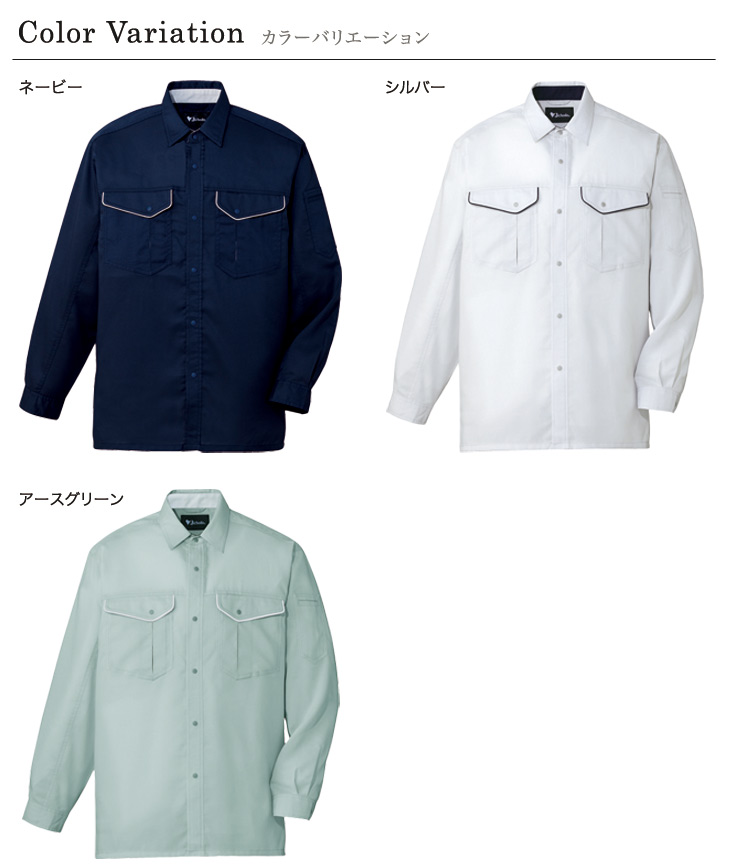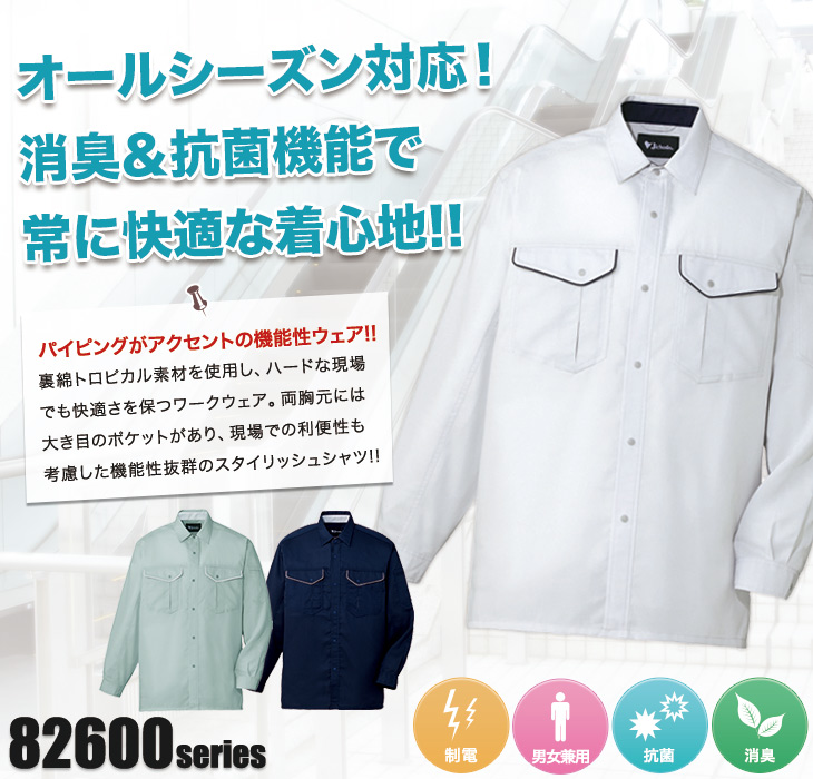82600シリーズ,長袖,シャツ,秋冬用,春夏用,帯電防止,清涼,消臭,抗菌,ネービー,シルバー,アースグリーン
