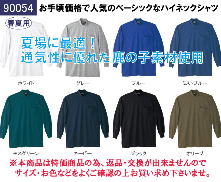 [春夏用]長袖ハイネックシャツ[春夏向け・胸ポケット有り][返品交換不可](01-90054)