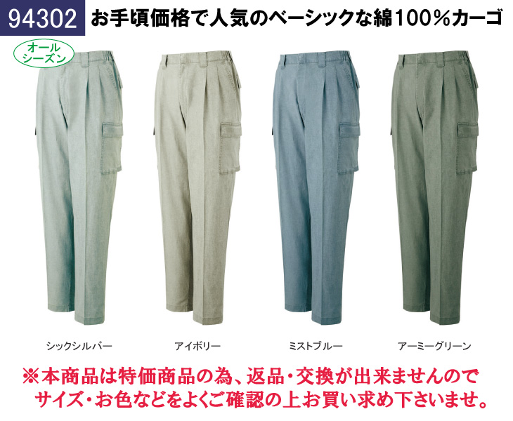 [春夏用]綿100%ツータックカーゴパンツ[返品交換不可](01-94302)