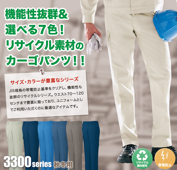 作早2015AW,大工,3300,old,カーゴパンツ,ワサビ,ベージュ,ブルー,モーブ,ネービー,ライトブルー,ダークブルー,アースグリーン,JI,秋冬,製品制電,エコ,JIS T8118,股下ハーフ