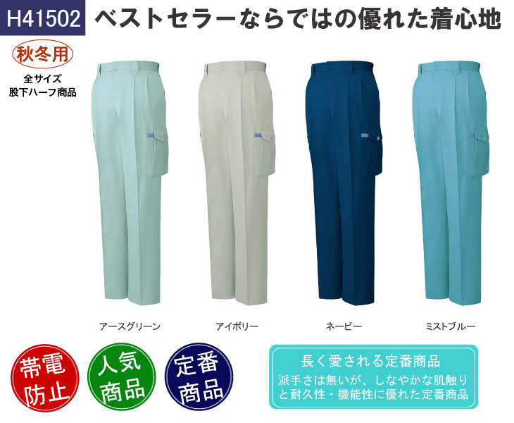 [秋冬用]ソフトツイル制電ツータックカーゴパンツ[股下ハーフ](01-H41502)