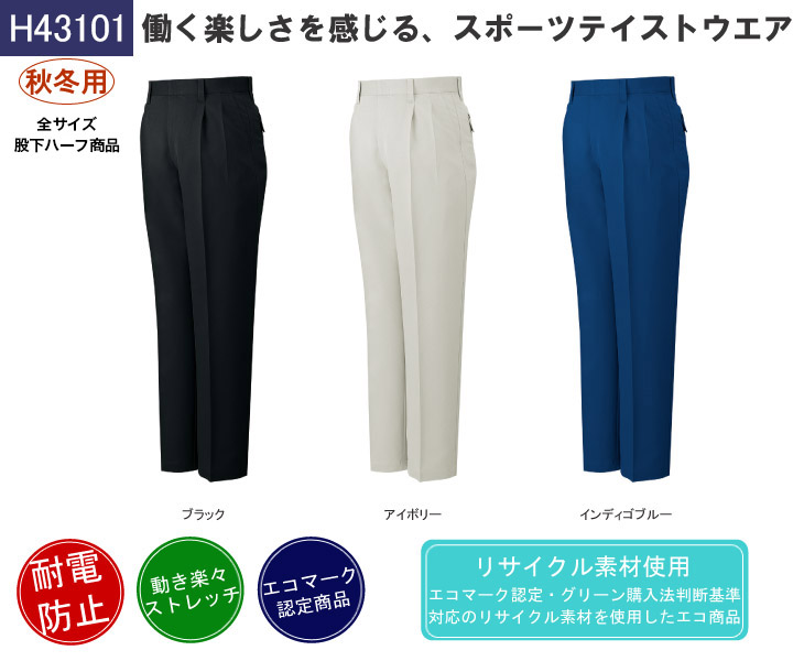 パンツ,自重堂,秋冬,ツータック,ストレッチ,帯電防止,エコマーク認定,グリーン購入法対応,ケミカルリサイクル対応,アイボリー,ブラック,インディゴブルー,営業,配達,イベント,股下ハーフ,廃番