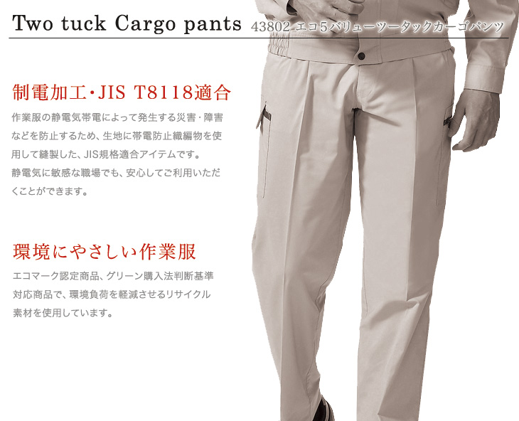 [秋冬用]エコ5バリューツータックカーゴパンツ[JIS T8118適合]股下ハーフ(01-H43802)