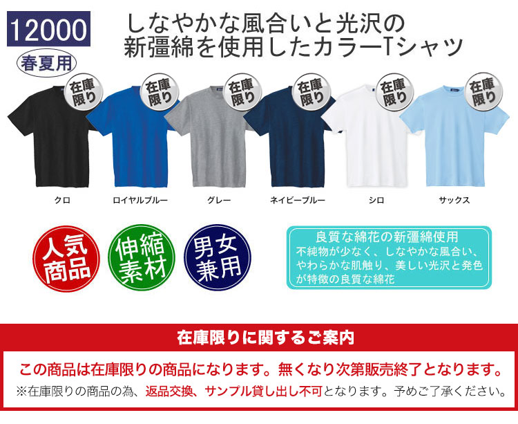 【在庫限り】綿100%半袖Tシャツ[胸ポケット無し](02-12000)