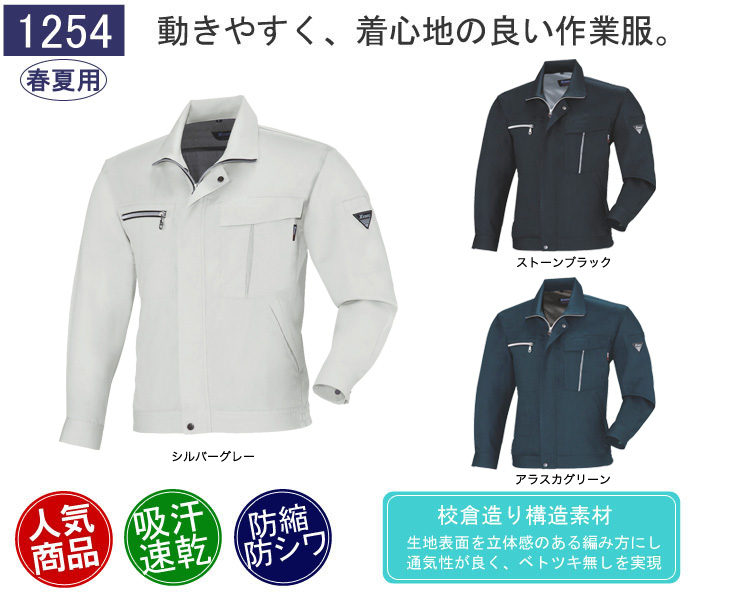 1250,長袖ブルゾン,ジーベック,春夏用,クールビズ,1250シリーズ,プリーツロンMINIズームアップ,シルバーグレー,ストーンブラック,アラスカグリーン,XEカット,通気性,吸汗性,清涼,スムーズアップ,イージーケア,速乾性,防縮防シワ,校倉造り,涼しい,営業,配達,建設,建築,