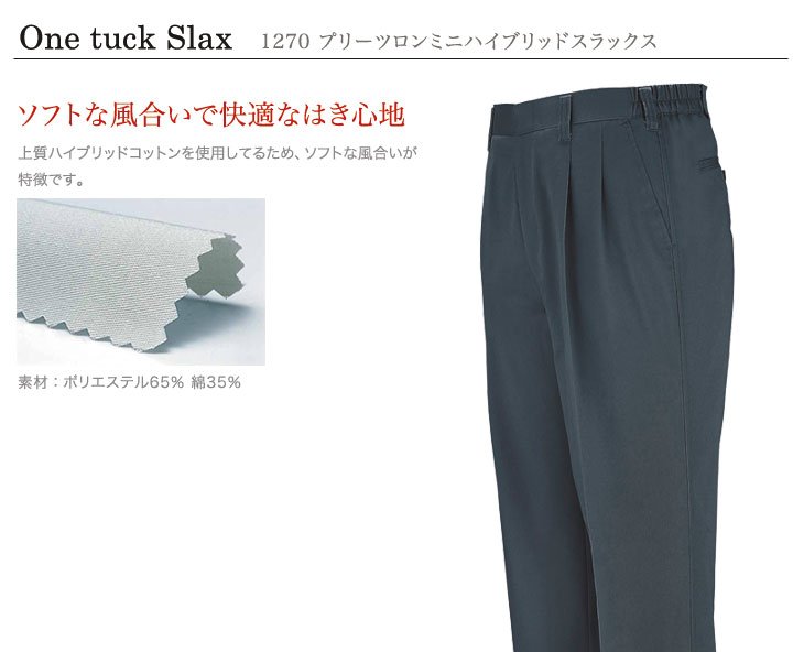 スラックス,パンツ,ジーベック,春夏用,1270シリーズ,プリーツロンMINIハイブリッド,帯電防止,ソフト風合い,防縮、防シワ,年間対応,メッシュプリーツロン,グレー,チャコールグレー,モスグリーン,建設,建築,電機,設備,営業,配達