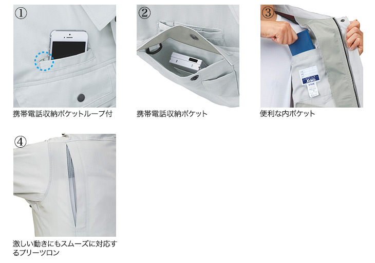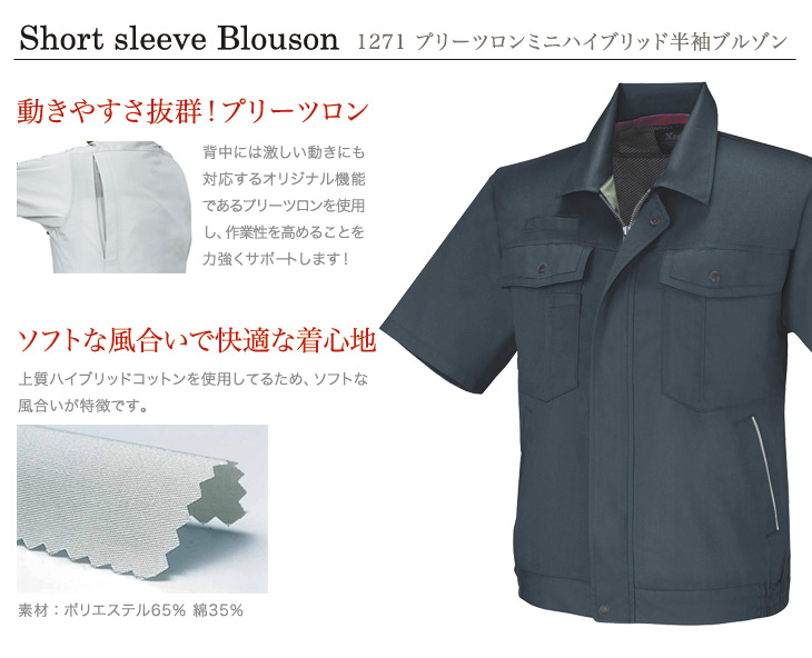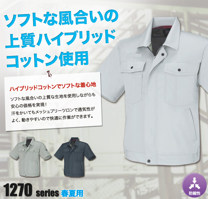 半袖ブルゾン,ジーベック,春夏用,1270シリーズ,プリーツロンMINIハイブリッド,帯電防止,ソフト風合い,防縮、防シワ,年間対応,メッシュプリーツロン,グレー,チャコールグレー,モスグリーン,建設,建築,電機,設備,営業,配達