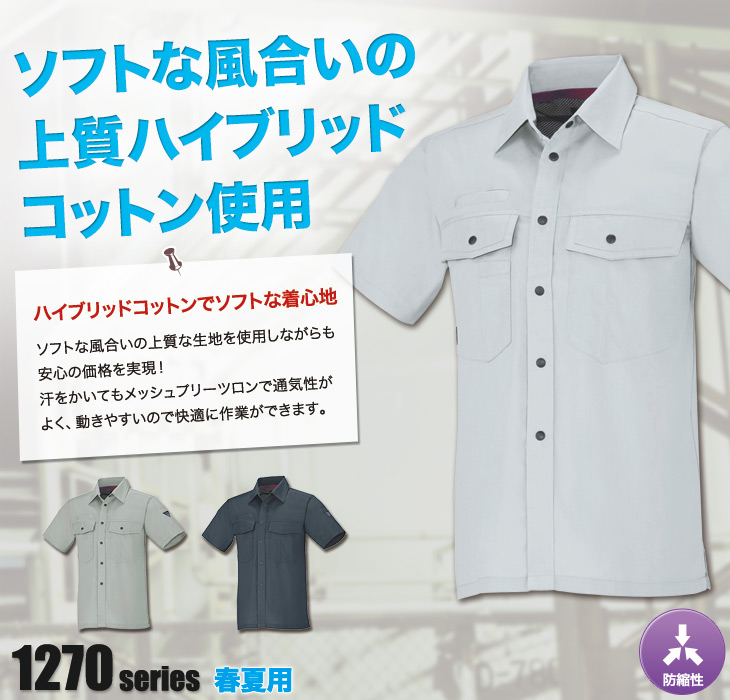 半袖シャツ,ジーベック,春夏用,1270シリーズ,プリーツロンMINIハイブリッド,帯電防止,ソフト風合い,防縮、防シワ,年間対応,メッシュプリーツロン,グレー,チャコールグレー,モスグリーン,建設,建築,電機,設備,営業,配達
