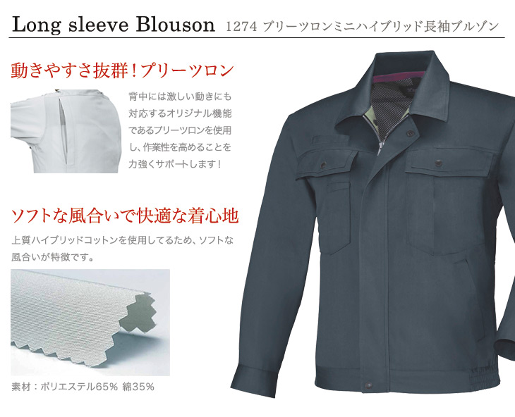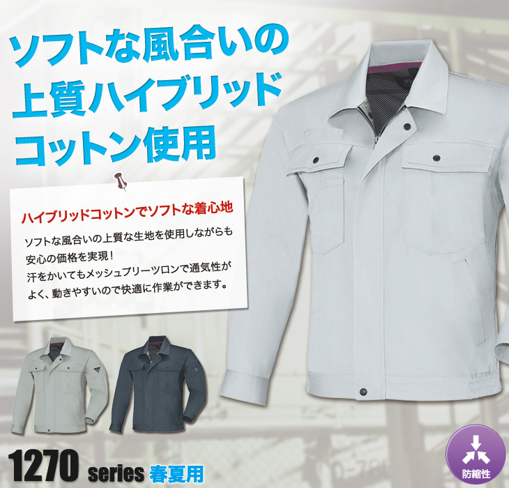 長袖ブルゾン,ジーベック,春夏用,1270シリーズ,プリーツロンMINIハイブリッド,帯電防止,ソフト風合い,防縮、防シワ,年間対応,メッシュプリーツロン,グレー,チャコールグレー,モスグリーン,建設,建築,電機,設備,営業,配達