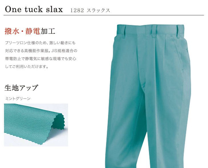 作早2015AW,スラックス,パンツ,ジーベック,秋冬用,1280シリーズ,プリーツロンMINI,帯電防止,撥水加工,コン,ネービー,グレー,グリーン,モスグリーン,ミントグリーン,建設,建築,電気,設備,農業,運送,倉庫,
