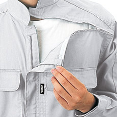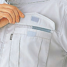 フラップの開閉が楽なマジックテープ付き胸ポケット