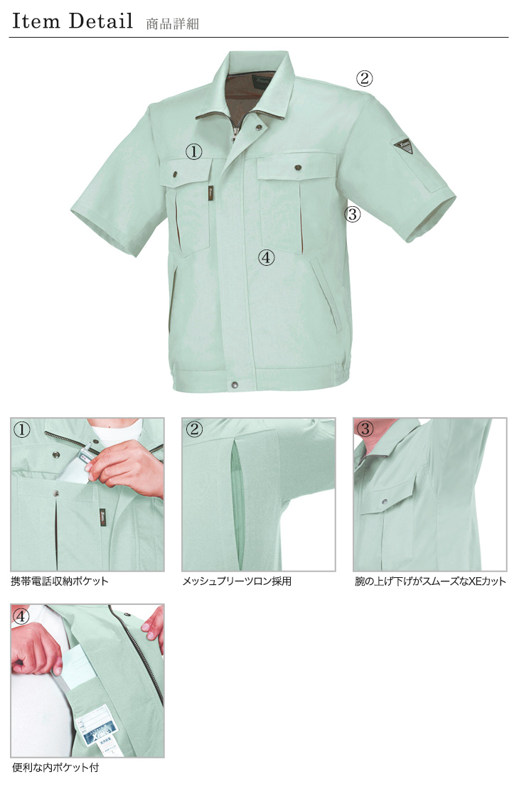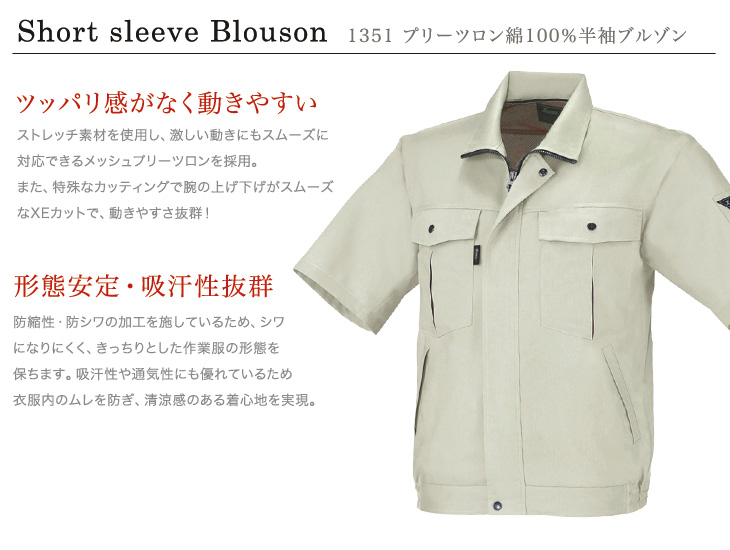 [春夏用]プリーツロン綿100%半袖ブルゾン(02-1351)