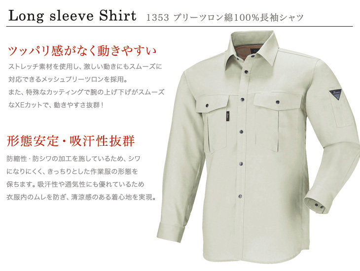 [春夏用]プリーツロン綿100%長袖シャツ(02-1353)