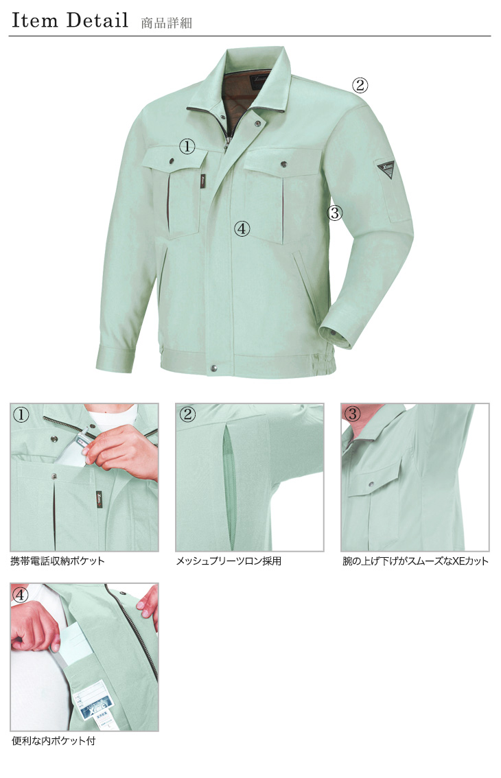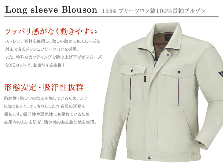 [春夏用]プリーツロン綿100%長袖ブルゾン(02-1354)
