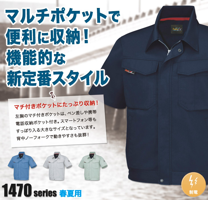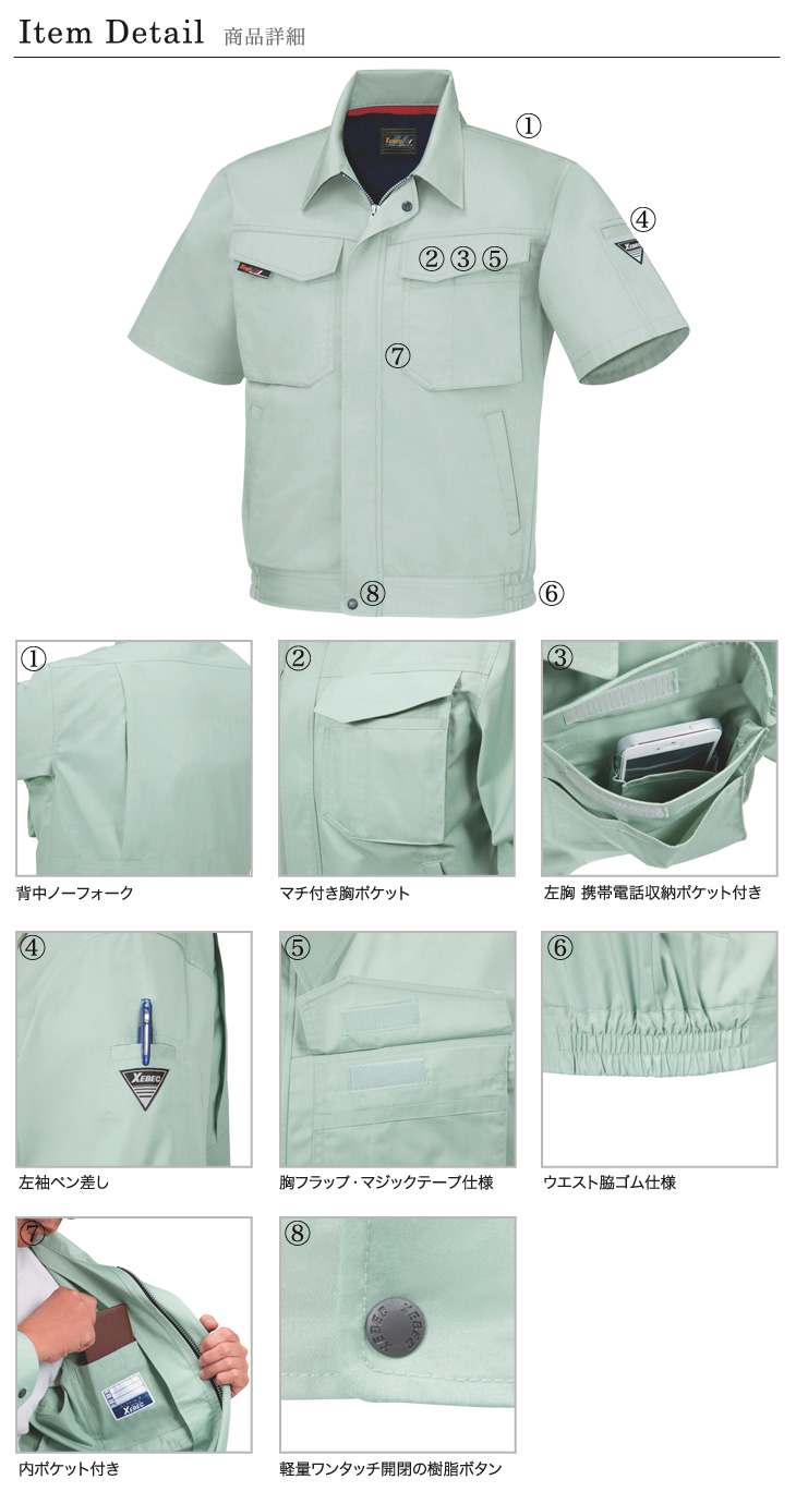 ジーベック,激安,半袖ブルゾン,春夏用,コン,グレー,ブルー,モスグリーン,帯電防止,バンザイカット,建設,土木,大工,電気,設備,運送,倉庫,営業,農作業着