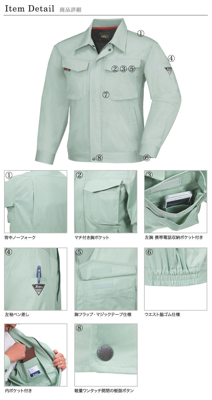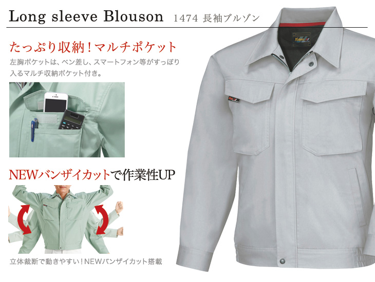 ジーベック,激安,長袖ブルゾン,春夏用,コン,グレー,ブルー,モスグリーン,帯電防止,バンザイカット,建設,土木,大工,電気,設備,運送,倉庫,営業,農作業着