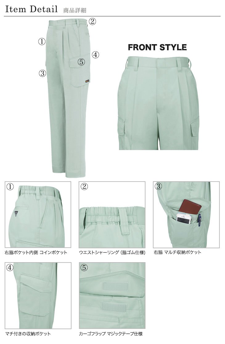 ジーベック,激安,カーゴパンツ,ツータックラットズボン,春夏用,コン,グレー,ブルー,モスグリーン,帯電防止,建設,土木,大工,電気,設備,運送,倉庫,営業,農作業着