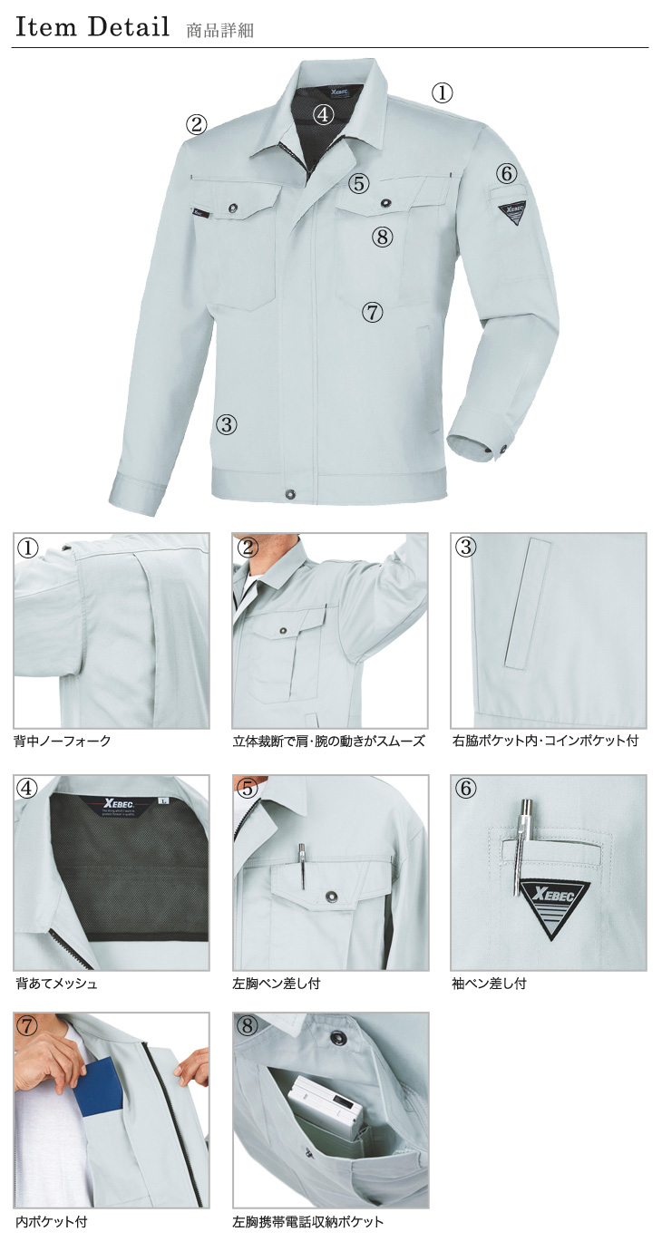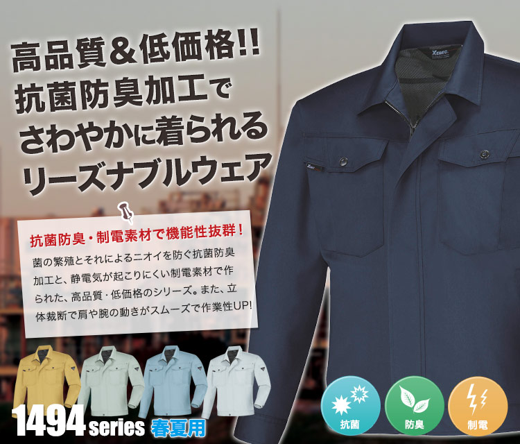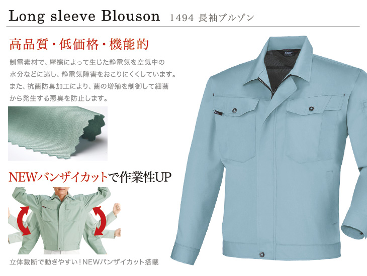 長袖ブルゾン,ジーベック,春夏用,1490シリーズ,ジーベックQUALITY,バンザイカット,帯電防止,抗菌防臭,年間対応,ディープネイビー,グレー,ブルーグレー,モスグリーン,キャメル,建設,建築,鉄鋼,機械,運送,倉庫,営業,配達,農業,大工,大きい