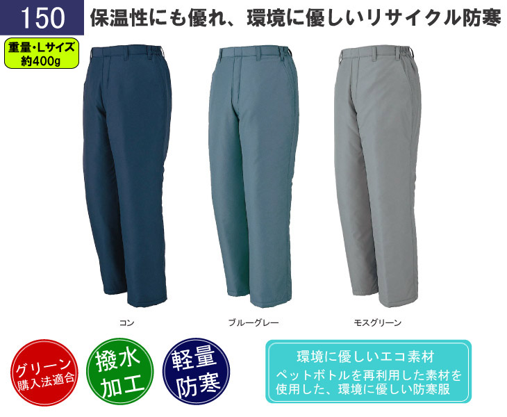 防寒服,パンツ,ジーベック,グリーン購入法適合,軽量防寒,撥水加工,コン,ブルーグレー,モスグリーン,エコ,建設,土木,イベント