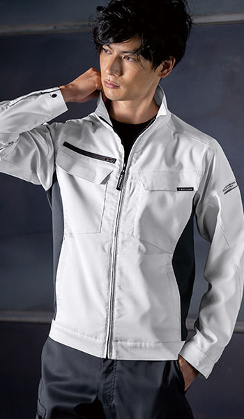 植物由来のリサイクル素材を利用した、SDGsに貢献しているエコなワークブルゾン。春夏仕様の清涼感あるストレッチが効いた裏綿素材。カラーが豊富なので、上下異なる色でのコーディネートなども楽しめます。