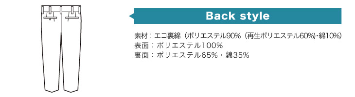 - エコ裏綿(ポリエステル90%「再生ポリエステル60%」、綿10%「表面:ポリエステル100%、裏面:ポリエステル65%・綿35%」)