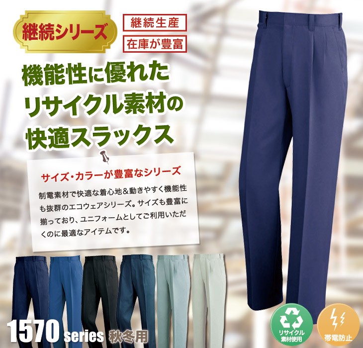 スラックス,1570,大きい,パンツ,CRESTA21,クレスタ21,コン,ネービー,ディープネイビー,シルバーグレー,コバルトブルー,クロ,アラスカグリーン,ミストグリーン,XE,秋冬,製品制電,帯電防止,エコ,営業,リサイクル素材使用,裏綿素材,配達,イベント,建設,運送,清掃