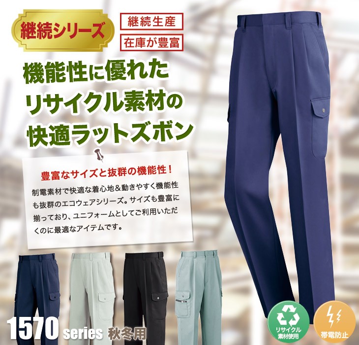 1570,大きい,カーゴパンツ,コン,ネービー,ディープネイビー,シルバーグレー,クロ,ミストグリーン,XE,秋冬,製品制電,エコ,帯電防止,営業,配達,イベント,建設,運送,倉庫