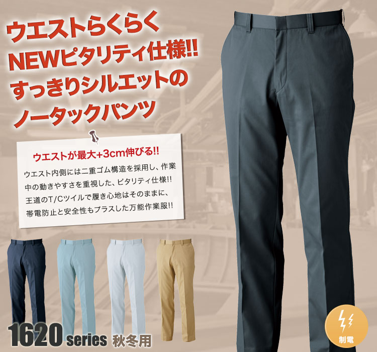 1620シリーズ,ジーベック,パンツ,ノータック,制電,帯電防止,スラックス,ネイビー,シルバーグレー,グリーン,キャメル,秋冬用,ピタリティ