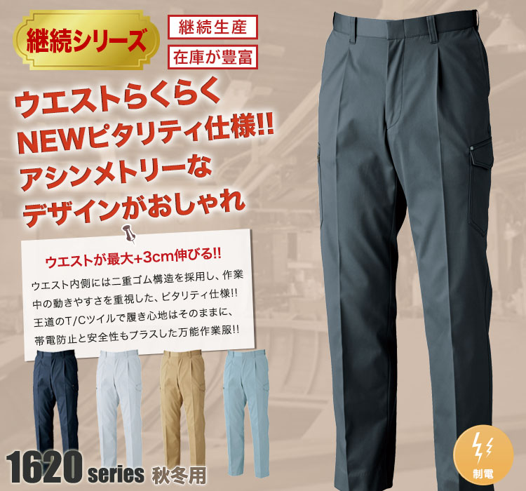1620シリーズ,ジーベック,パンツ,ラットズボン,ピタリティ,秋冬用,ネイビー,シルバーグレー,グリーン,キャメル,帯電防止,工場