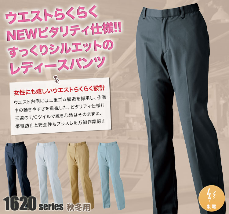1620シリーズ,ジーベック,レディース,女性,スラックス,パンツ,秋冬用,工場,ノータック,おしゃれ,ネイビー,シルバーグレー,キャメル,グリーン