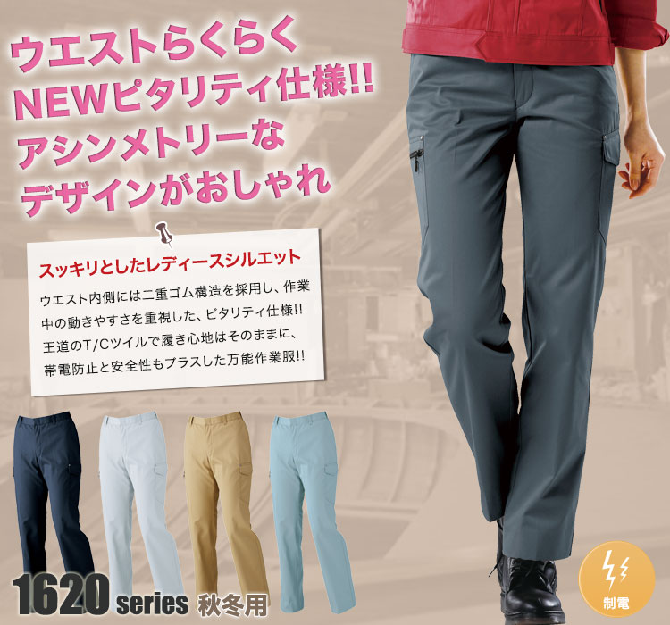 1620シリーズ,ジーベック,パンツ,ラットズボン,ピタリティ,秋冬用,レディース,女性,ネイビー,シルバーグレー,グリーン,キャメル,工場,帯電防止