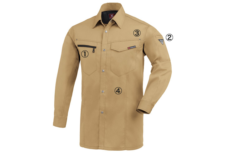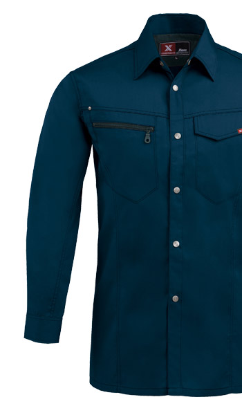 快適さを追求したジーベックの定番長袖シャツ。肩部分にはメッシュ素材が採用されているので通気性もよく涼しい!