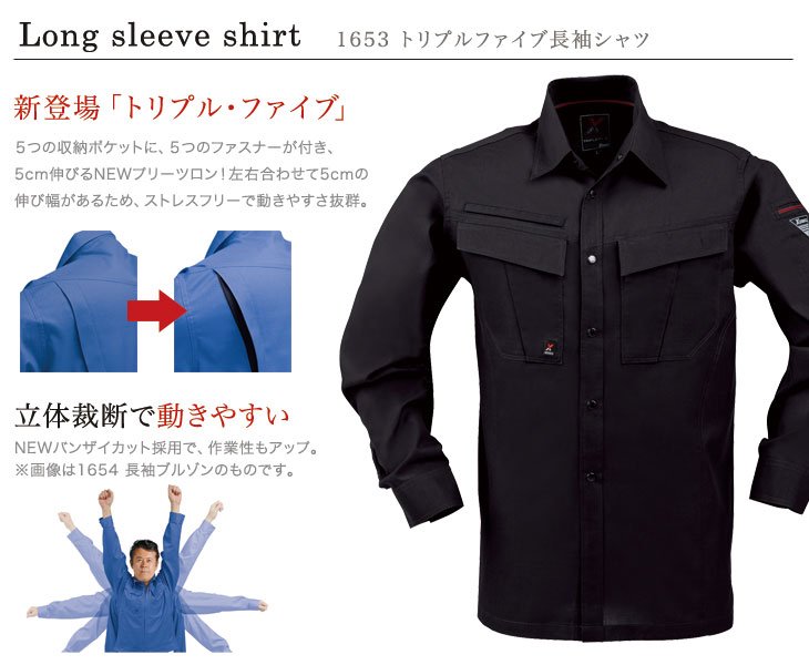 [春夏用]トリプルファイブ 長袖シャツ(02-1653)