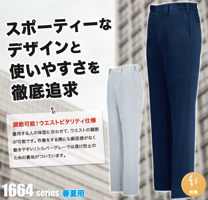 スラックス,1660シリーズ,パンツ,ノータックスラックス,ジーベック,春夏用,かっこいい,イベント,帯電防止,コン,シルバーグレー,運送,倉庫,おしゃれ,営業,配達