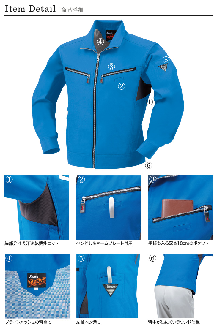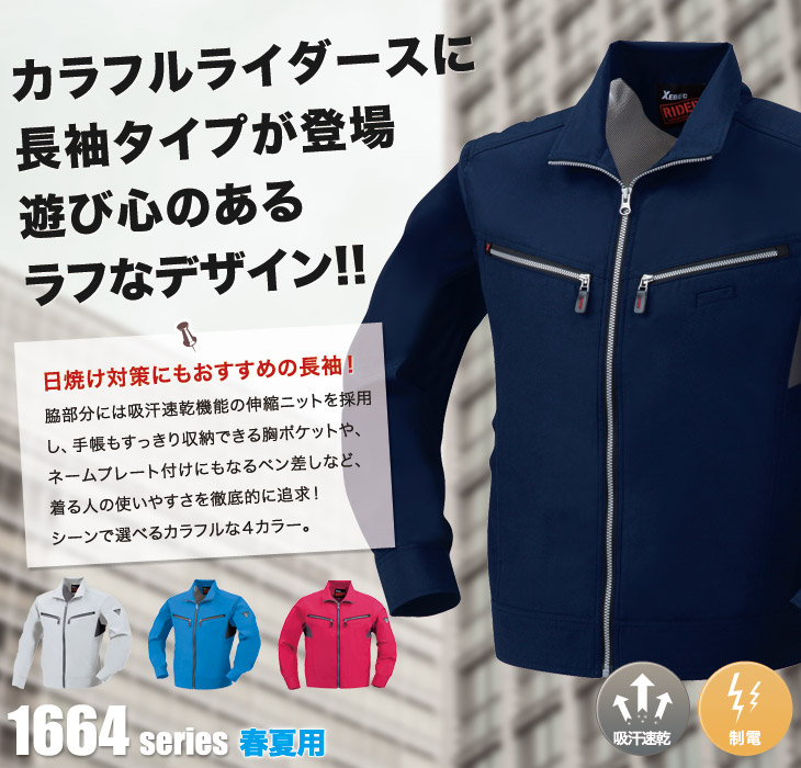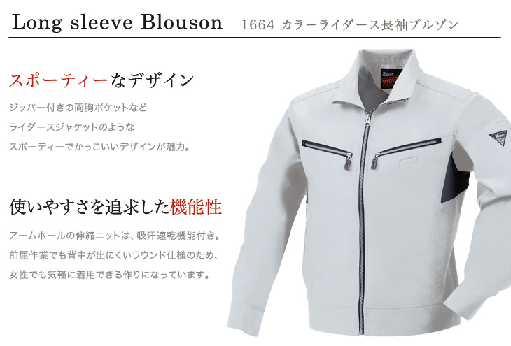 【在庫限り】[春夏用]カラーライダース長袖ブルゾン(02-1664)