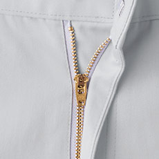 フロントファスナーは丈夫なYKK 3YGファスナーを使用。
