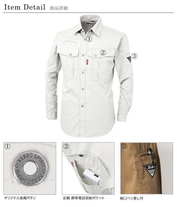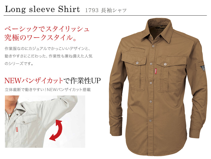 かっこいい,1790,長袖シャツ,ジーベック,春夏用,1790シリーズ,綿100%,ソフト,洗い加工,バンザイカット,5L,建設,建築,鉄鋼,溶接,機械,アイボリー,モカ,ストーンブラック,大工