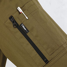 右胸ポケットはファスナー仕様で物が落ちにくく、深さもたっぷり。(深さ20cm)
