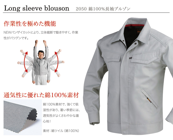 作早2015AW,2050シリーズ,ジーベック,秋冬,長袖ブルゾン,綿100%,鉄鋼,機械,溶接,激安,コン,ネービー,グレー,ブルーグレー,モスグリーン,バンザイカット,安心設計,大工,農作業着,農業