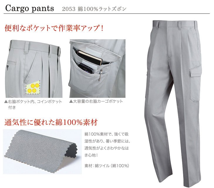 作早2015AW,2050シリーズ,ジーベック,秋冬,カーゴパンツ,ツータックラットズボン,綿100%,鉄鋼,機械,溶接,激安,コン,ネービー,グレー,ブルーグレー,モスグリーン,安心設計,大工,農作業着,農業