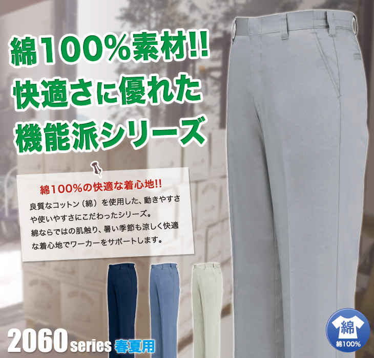 2060シリーズ,ジーベック,激安,パンツ,ノータックスラックス,春夏用,コン,グレー,ブルーグレー,モスグリーン,綿100%,建設,土木,大工,電気,設備,運送,倉庫,営業,農作業着,鉄鋼,機械,溶接