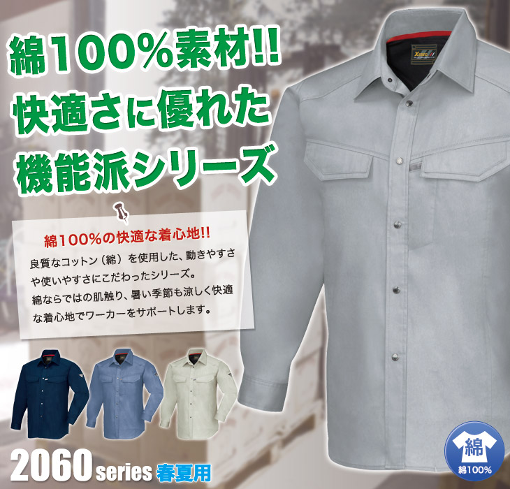 作早2015AW,2060シリーズ,ジーベック,激安,長袖シャツ,春夏用,コン,グレー,ブルーグレー,モスグリーン,綿100%,バンザイカット,建設,土木,大工,電気,設備,運送,倉庫,営業,農作業着,鉄鋼,機械,溶接
