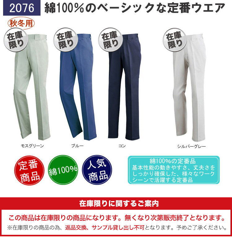 【在庫限り】綿100%ノータックスラックス(02-2076)