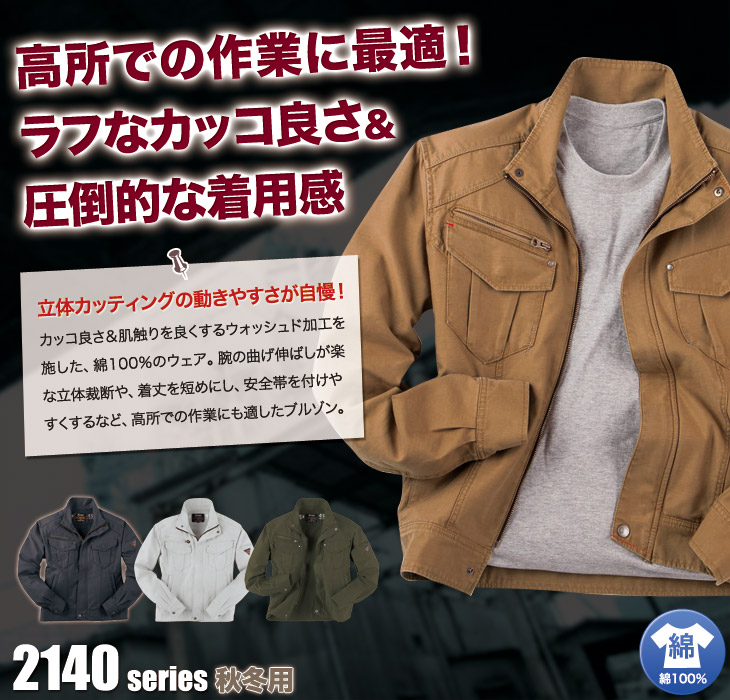 作早2015AW,ジーベック,長袖ブルゾン,秋冬,綿100%,かっこいい,洗い加工,立体裁断,モカ,ストーンブラック,ベージュ,鉄工,機械,大工,建築,